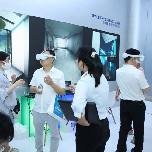 300+㎡的【元宇宙智能展館】,除了有全方位的產品展示區外,還設有炫酷未來感的元宇宙體驗區,搭載VR/AR技術,提供多角度、多場景仿真環境,打破產品與空間交互的邊界,融合視覺、聽覺等多種感官享受,帶來360°身臨其境沉浸式體驗。